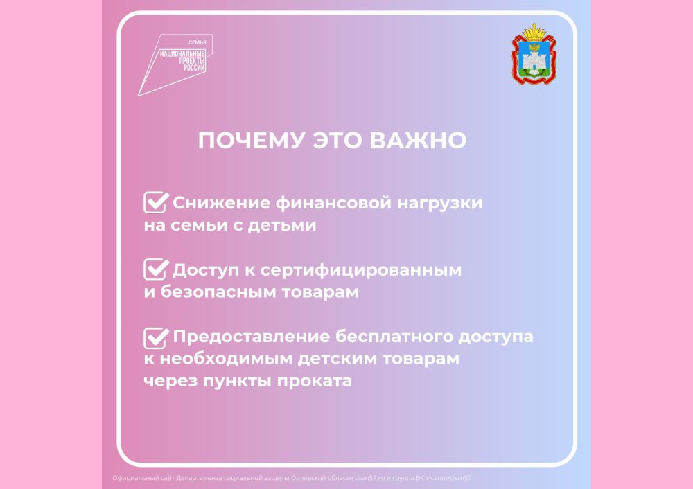 В Орловской области продолжают работу пункты проката предметов первой необходимости для новорожденных