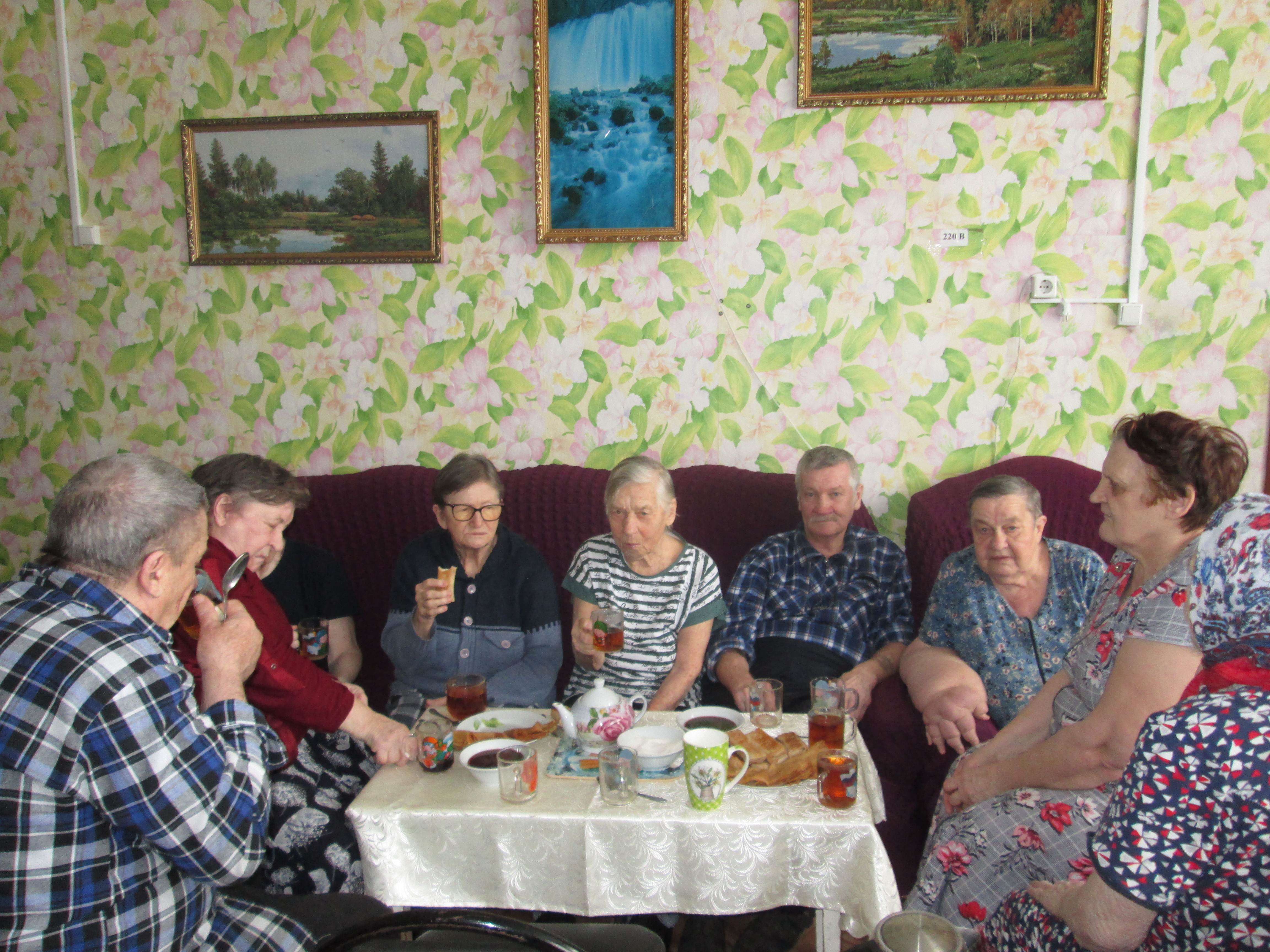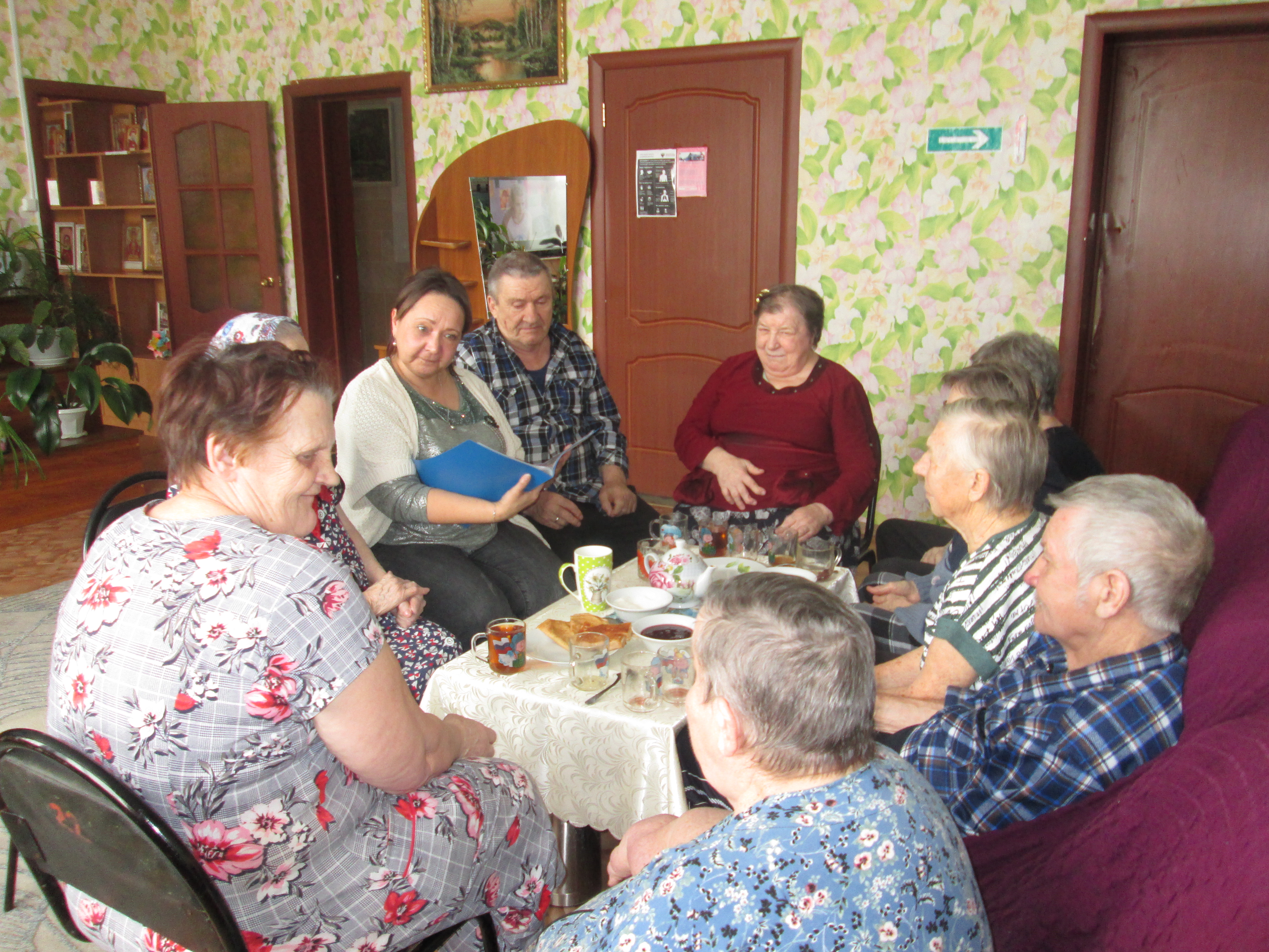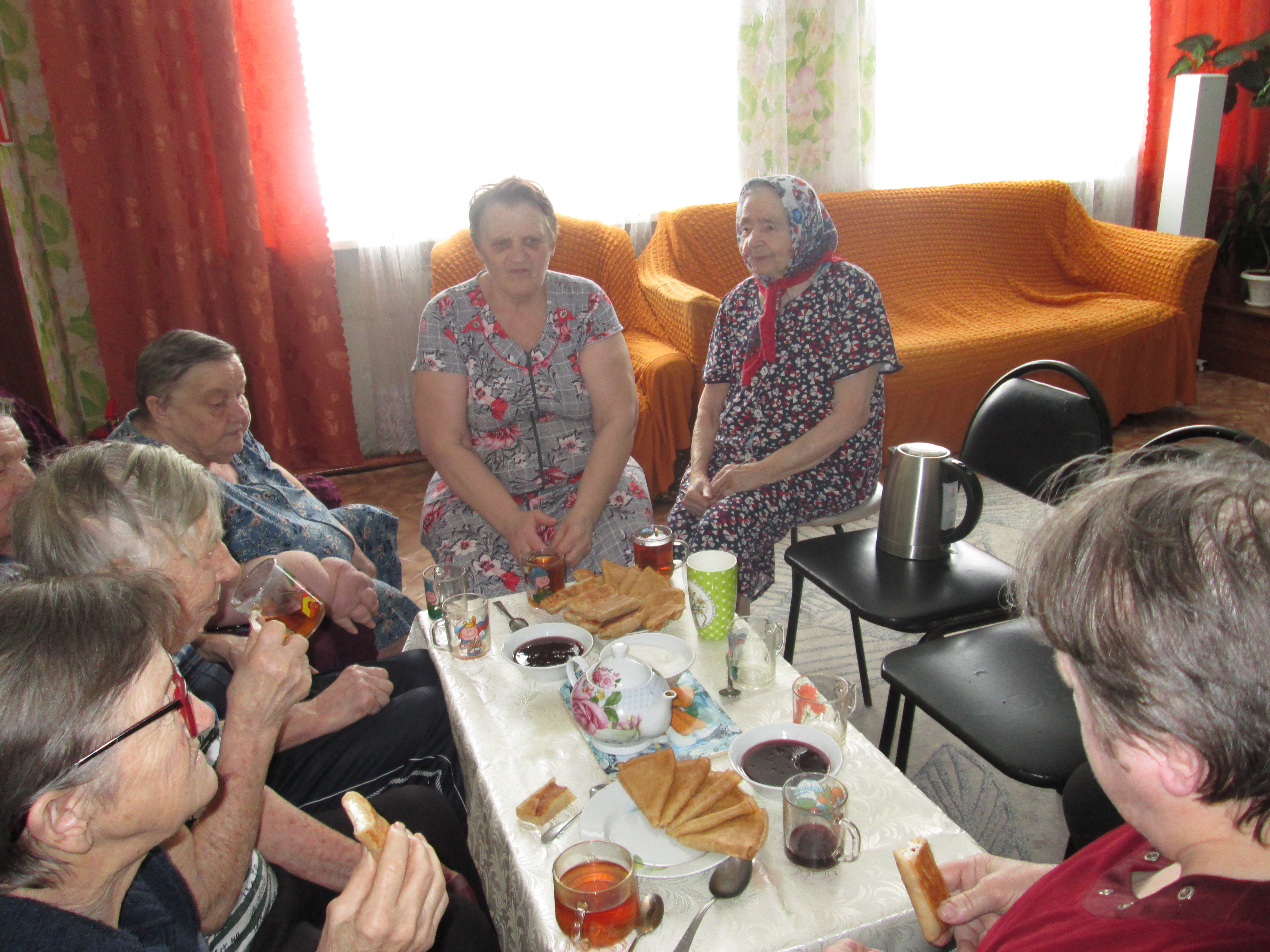 Проживающие отделения вместе со специалистом по социальной работе решили поддержать народную традицию, организовав чаепитие с блинчиками румяными, с начинкой.
