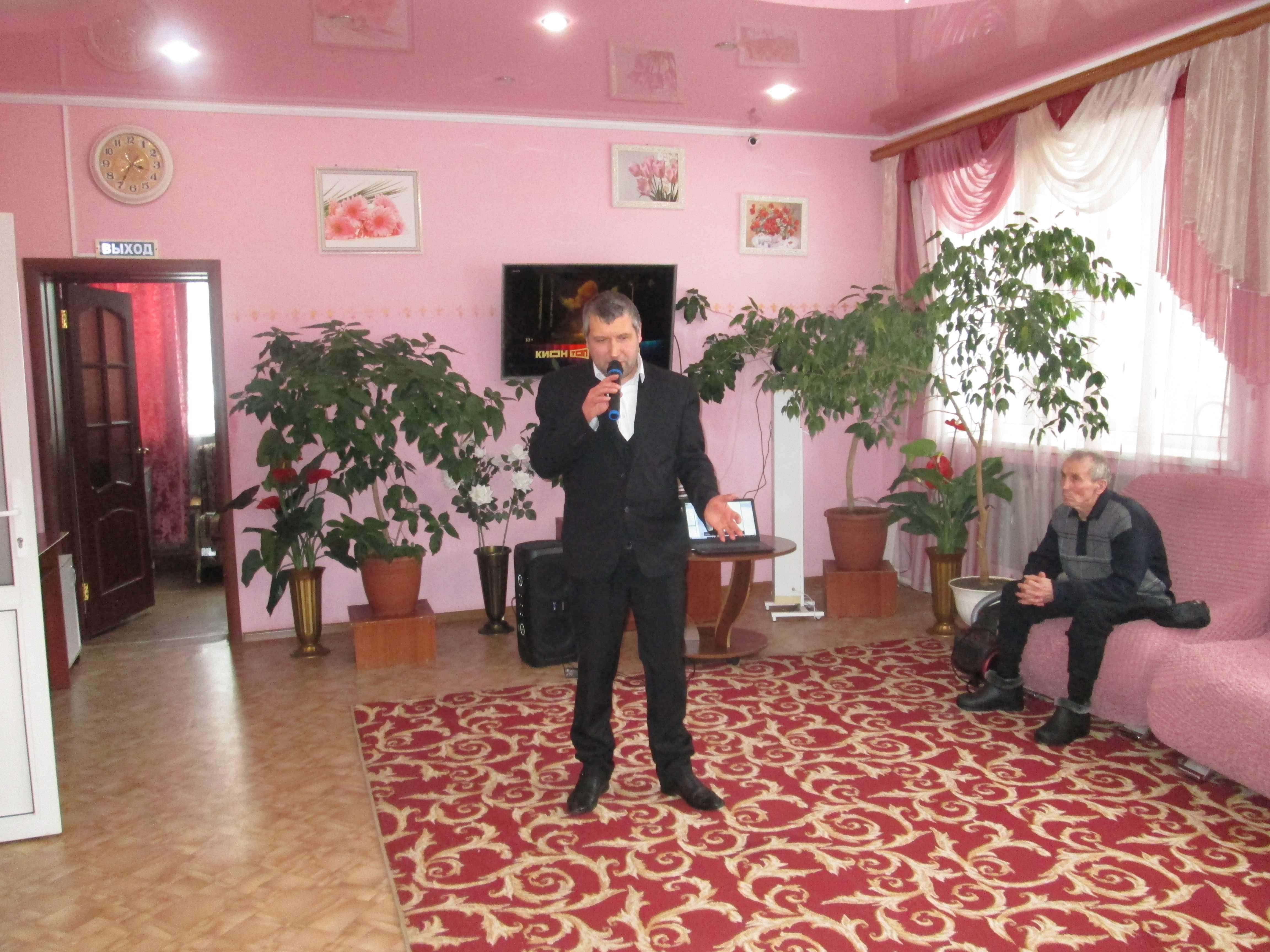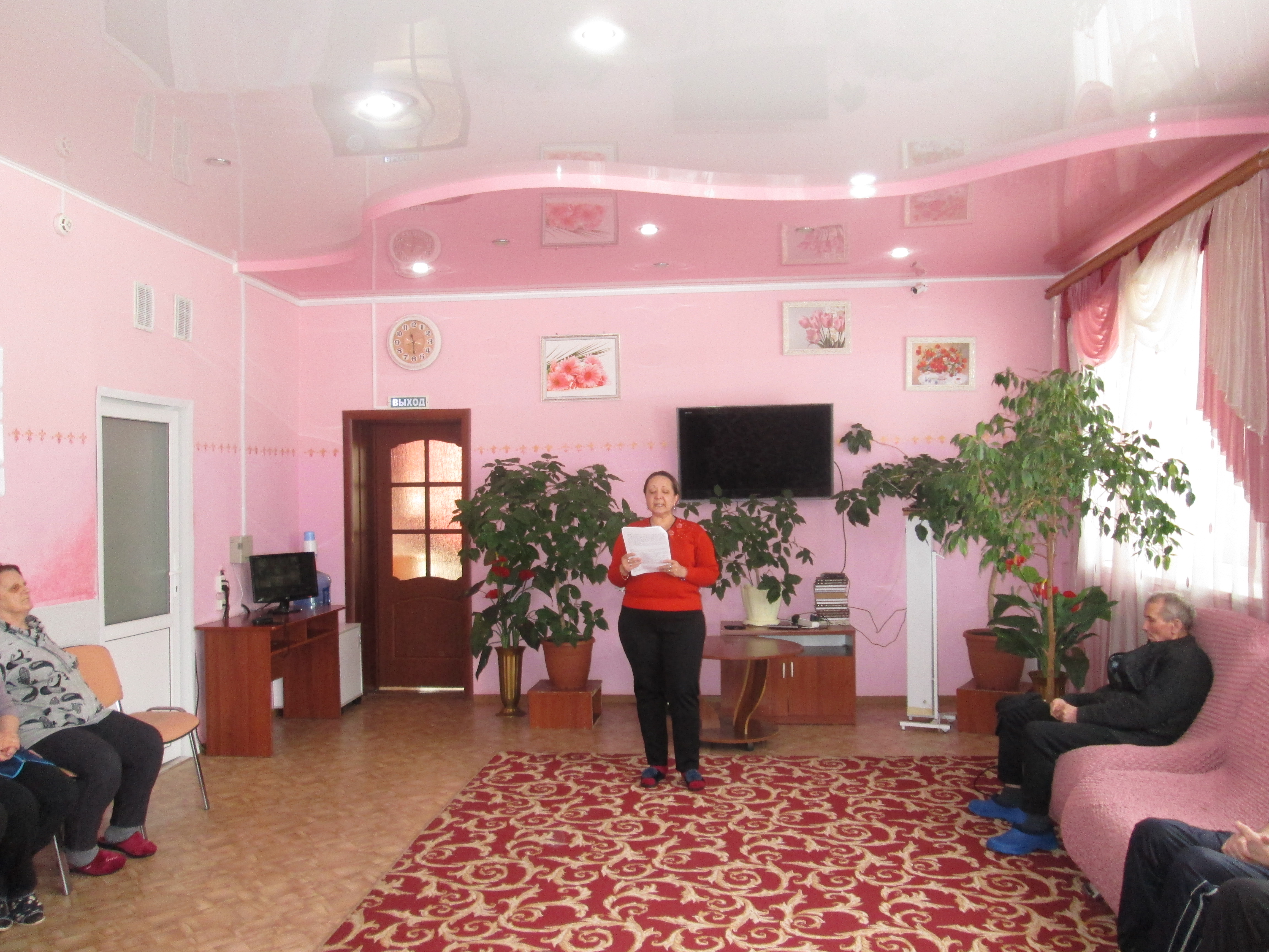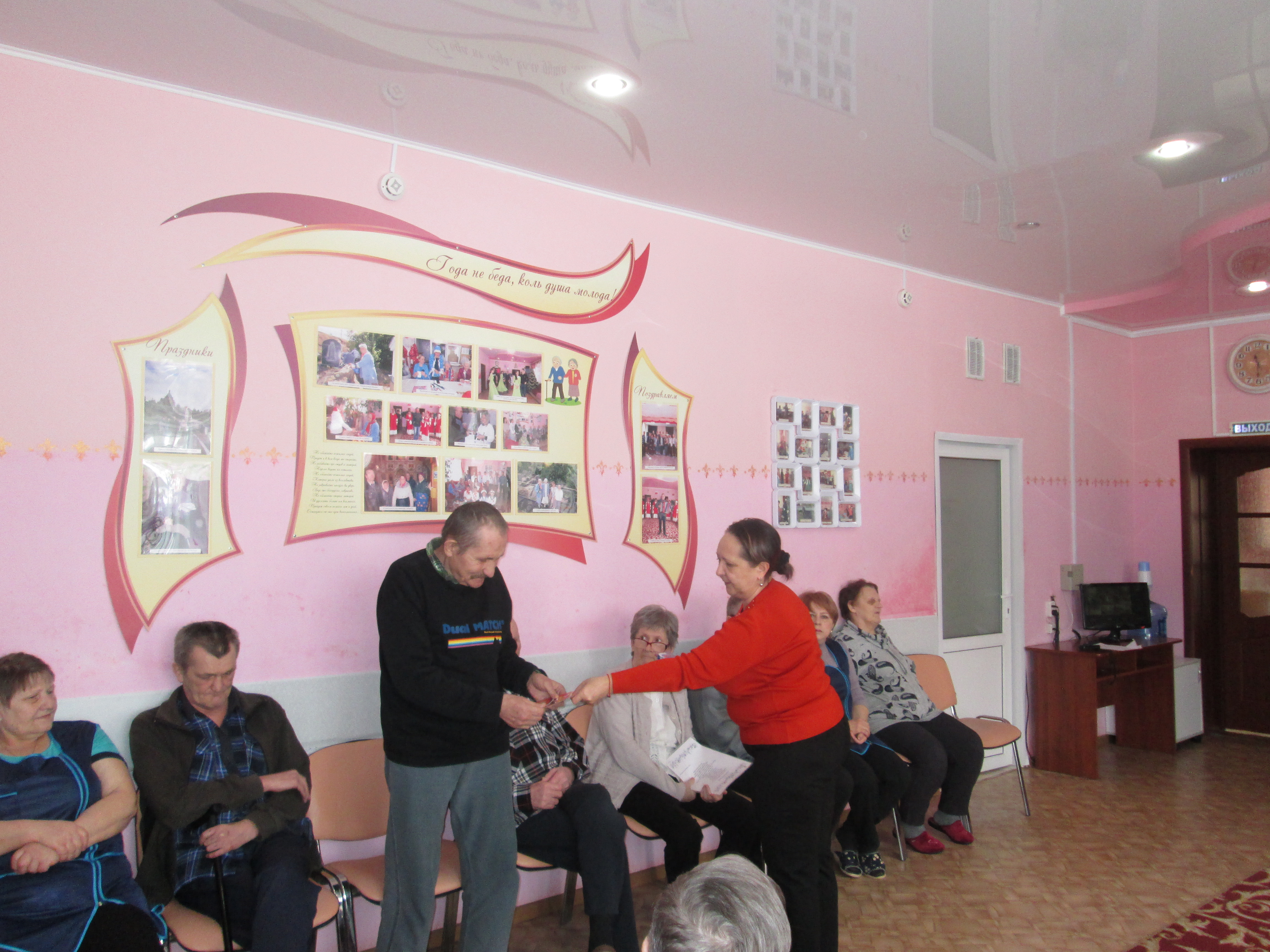 На протяжении всего концерта звучали песни, стихи, поздравления. От лица женского коллектива проживающих мужскую половину поздравила Холманских Людмила Петровна. Она прочла стихотворение собственного сочинения «Защитнику Отечества». Людмила Петровна всегда радует нас своими авторскими стихотворениями. Для каждого мужчины, проживающего в отделении, подготовили праздничные именные открытки.