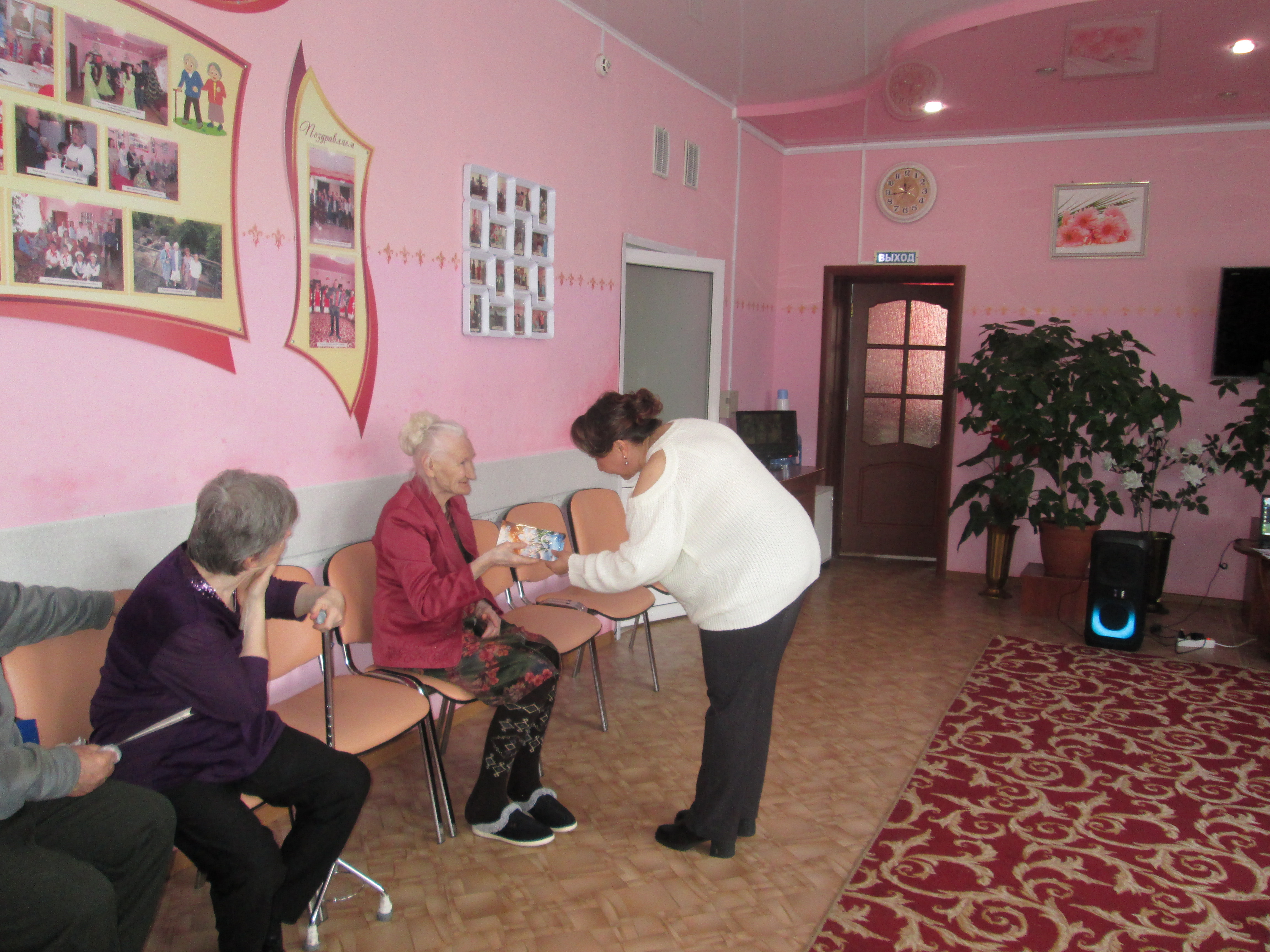 Приятная домашняя атмосфера царила в зале на протяжении всего действа. Проживающие не жалели рук и звонко аплодировали каждому музыкальному номеру. По окончании концерта все женщины отделения получили в подарок праздничные именные открытки с теплыми пожеланиями.